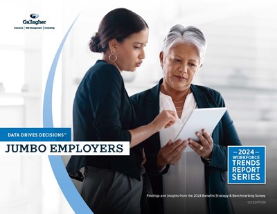 The findings are based on responses collected from large employers who participated in Gallagher’s 2024 Benefits Strategy & Benchmarking Survey. From key takeaways to specific data points, the information will help you stay ahead of current trends, evaluate benefit choices, and enhance the employee experience - so your organization can face the future with confidence.